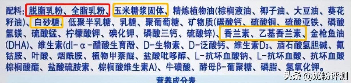 另外,在原料方面,铂睿的表现并不理想,从1段就开始添加玉米糖浆固体,3段更是特别加入了白砂糖和香精。